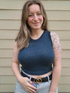 The Sincere Sweater is a DK weight sweater worked in 5x1 ribbing. It has a crew style neckline with a picked up collar, and is worked top down (flat for the armhole shaping, then in the round for the remainder of the body and sleeves) with a sloped drop shoulder construction. The yoke section is worked at a smaller stitch count than the full bust, and has some increases at the bottom, and underarm cast on stitches to increase to the full bust measurement. The sleeves have a small amount of short row shaping at the top before working straight. The collar, cuffs and bottom edge have a 1x1 ribbed hem. The sweater is designed to fall to a high hip level. The pattern is intended to be a boxy fit, but has options for waist shaping if desired, as well as adjusting length as needed for the body and sleeves. This is a size inclusive design, written for 10 sizes (32-68 inch / 80-170 cm finished bust, in 4 inch / 10 cm increments) and designed for 4-8 inches / 10-20 cm of positive ease.