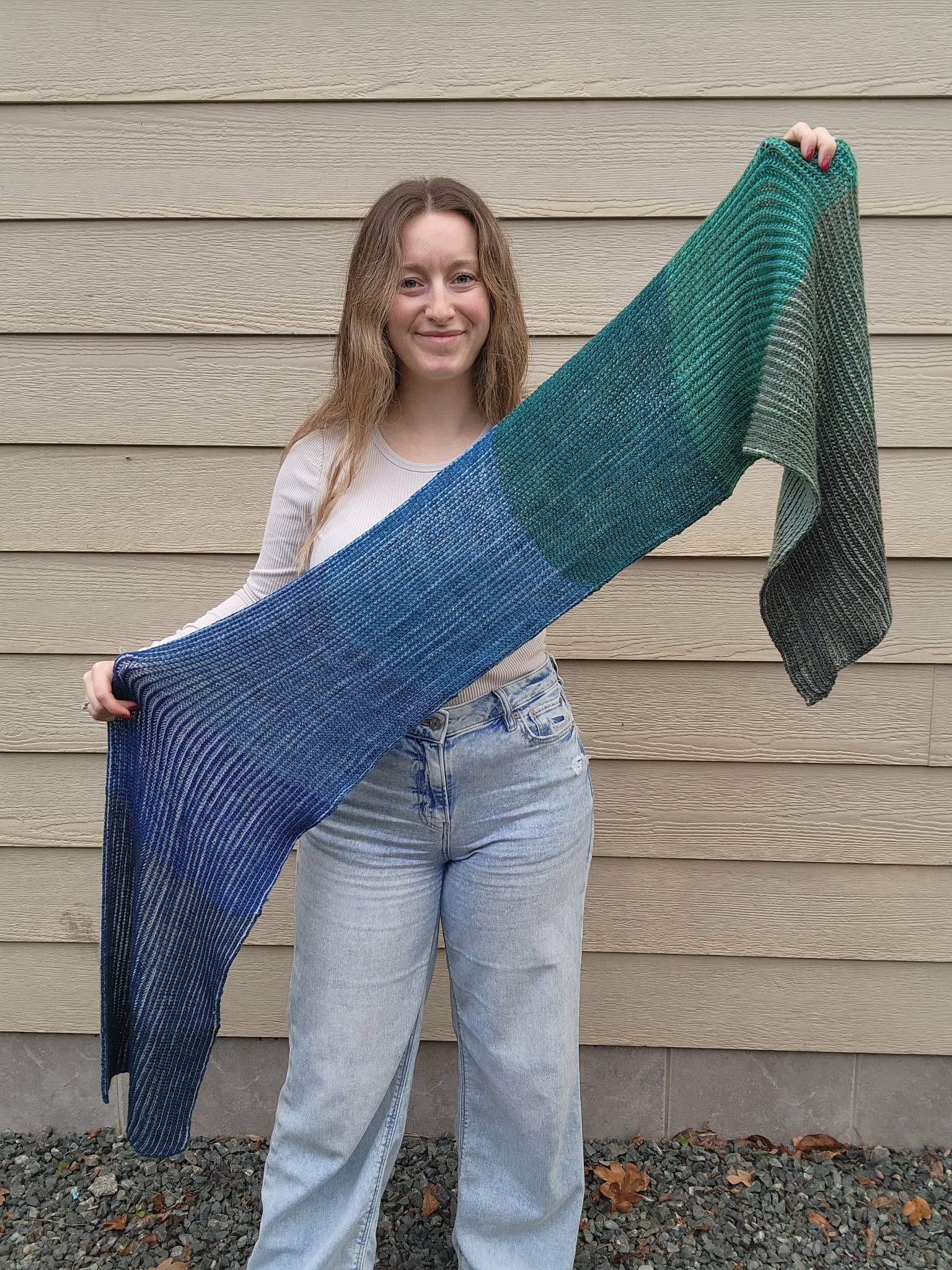 The Brioche Nebula Wrap is a reversible 2-colour brioche wrap pattern that comes in 3 sizes and 2 weights. This wrap is written for both fingering and DK weight yarn, and with scarf (designed for 20 g minis), shawl (designed for 50 g skeins) and blanket (designed for 100 g skeins) size options. This shawl is designed in collaboration with Treehouse Knits Traveling the Universe Advent for December 2025. It is designed to be knit with 18 colours (9 pairs), but could easily be adapted to another number of colours! The simple rectangular construction of the wrap allows for the 2-colour brioche to really shine, but remain an easily adjustable and fairly beginner-level pattern.