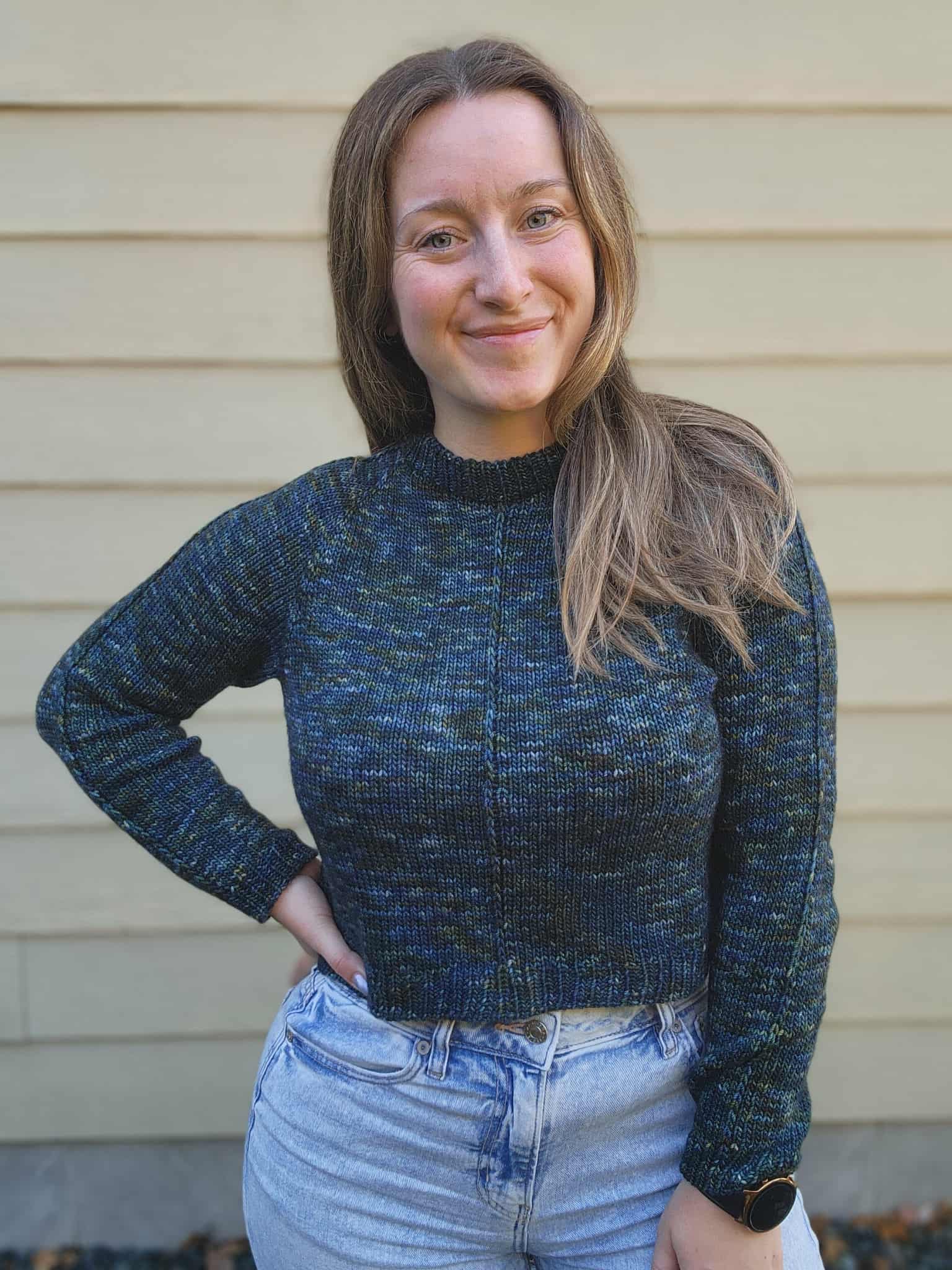 The DK Compass Crew Sweater is the crew neck and DK weight version of my best selling Compass design line! It is inspired by the lines of a compass, with 4 raised lines down the front, back and both sleeves mimicking the North, East, South and West compass points, and the raglan seams mimicking the North West, South West, South East, North East lines. It has a crew neck with short row shaping, and is worked top down with compound raglan shaping (increases concentrated at the beginning and end of the raglan section), as well as some additional increases worked in the body to increase to the full bust measurement. The sleeves and bottom edge have a 1x1 ribbed hem. The sweater is designed to fall to a slightly cropped level. The pattern has options for waist shaping if desired, and adding extra length.